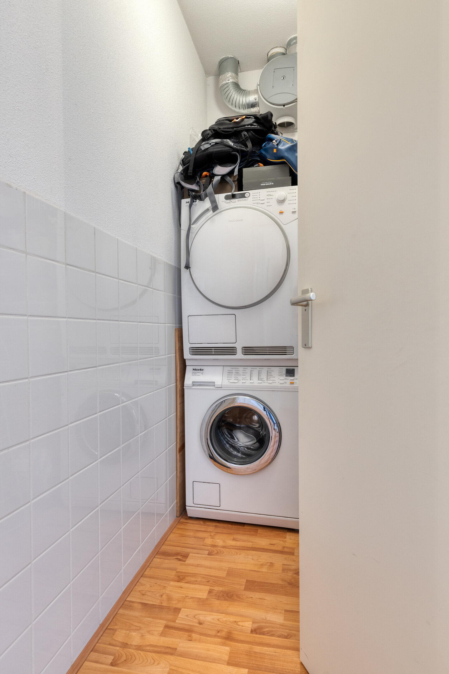 Aan de voorzijde van de woning ligt de eerste slaapkamer, van goed formaat en geschikt als hoofdslaapkamer, logeerkamer of werkruimte. Aangrenzend bevindt zich de berging met aansluitingen voor wasapparatuur en extra opslagruimte.