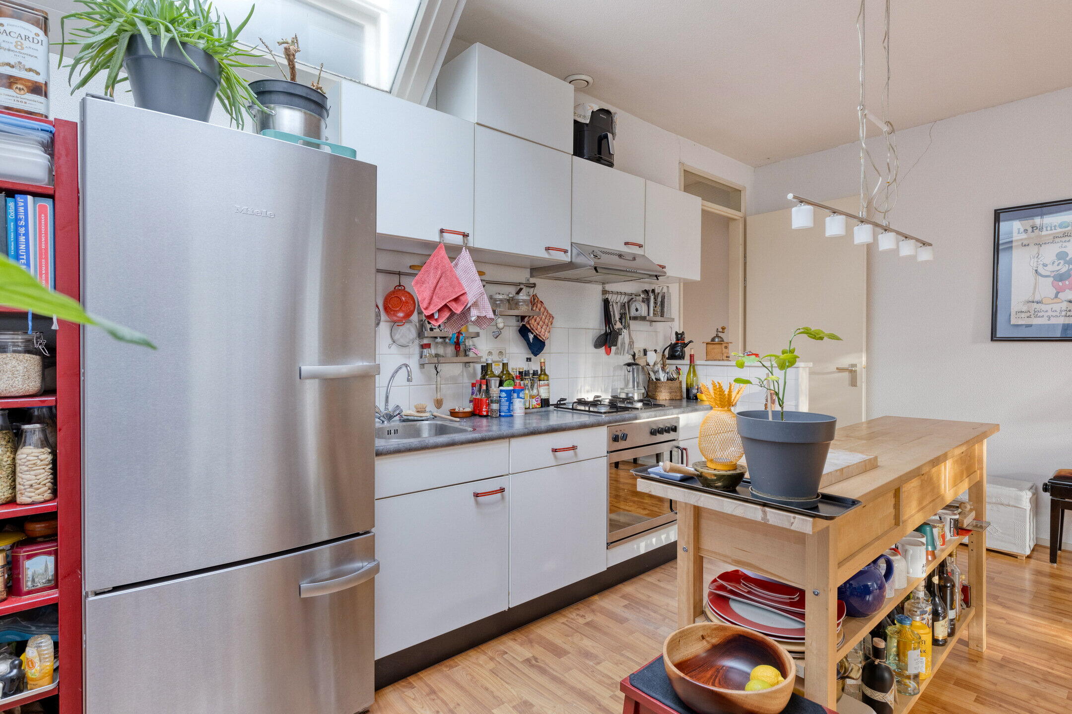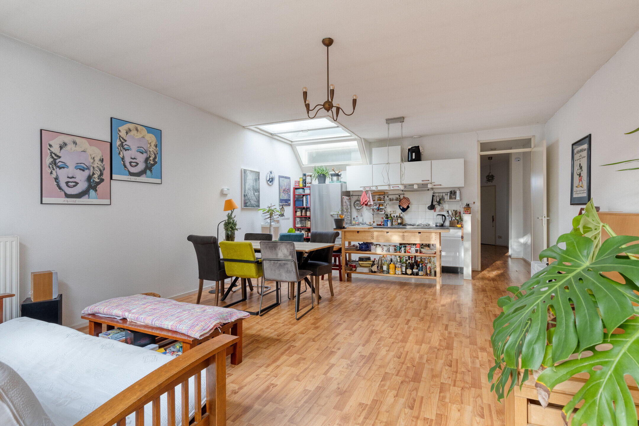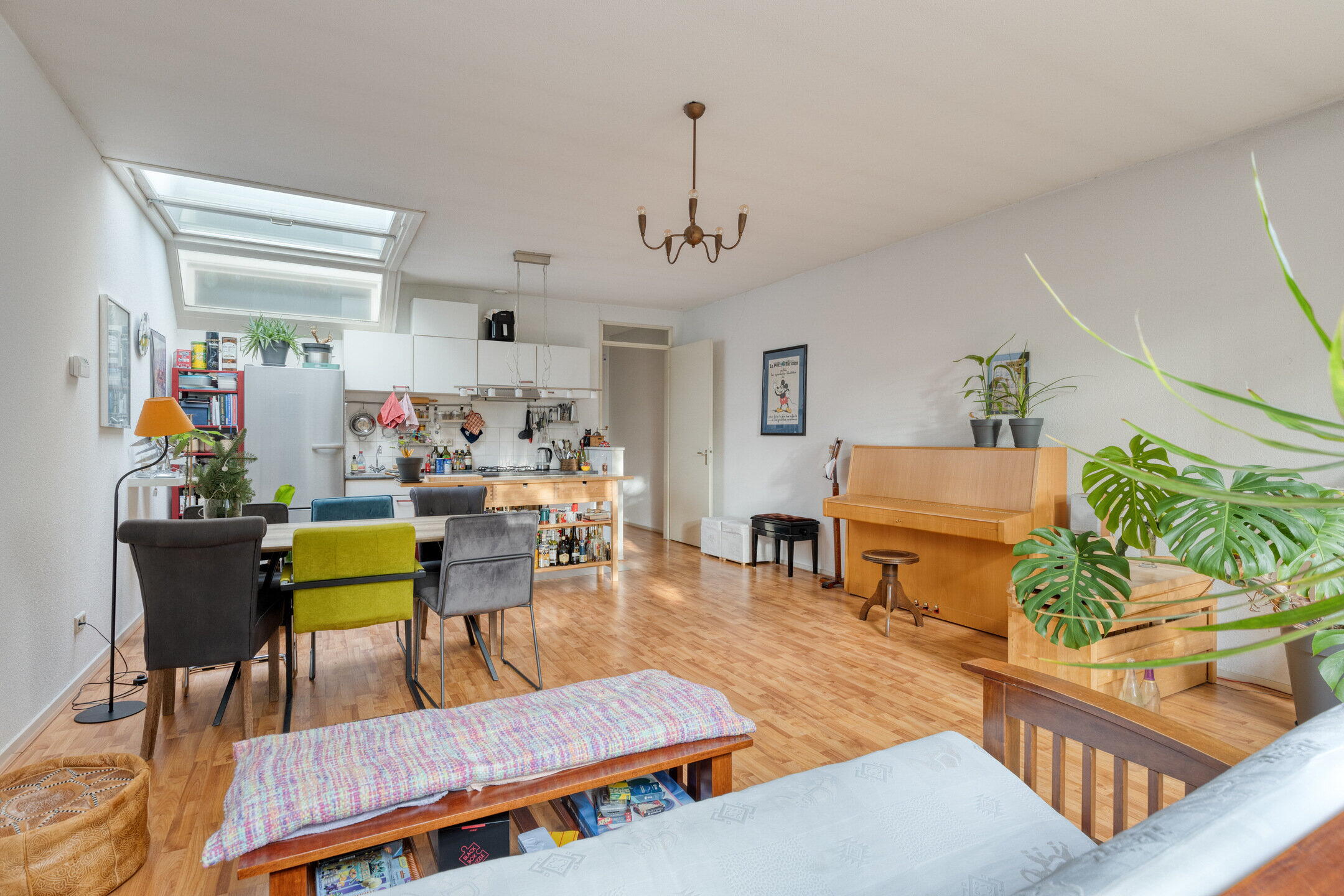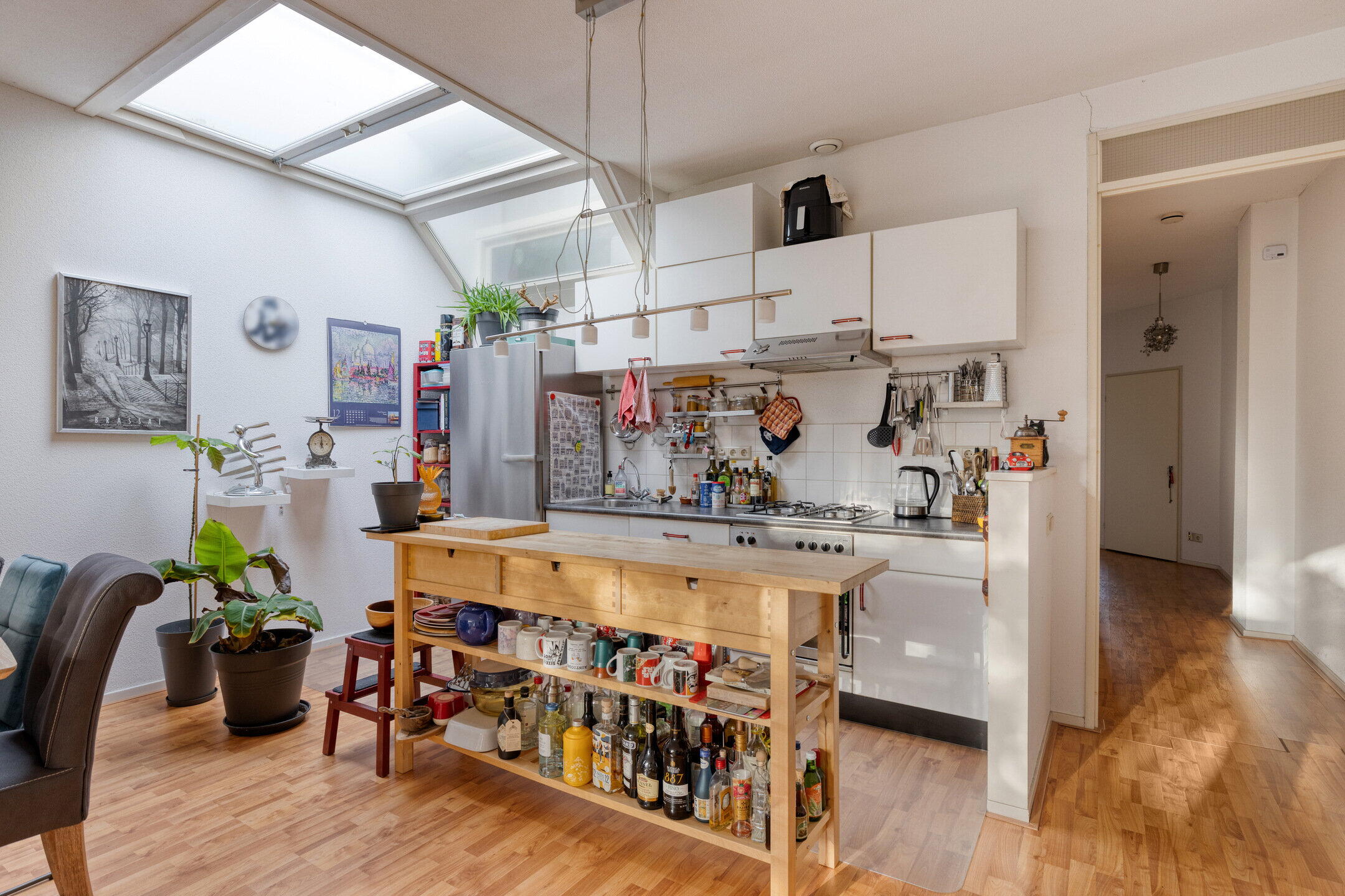 De woning eindigt in de lichte woon-/eetkamer aan de achterzijde. Er is voldoende ruimte voor een zithoek en een eethoek. De open keuken is praktisch opgesteld met voldoende werk- en kastruimte. Vanuit de woonkamer is er toegang tot de tuin, wat zorgt voor veel lichtinval en een prettige verbinding met buiten.
